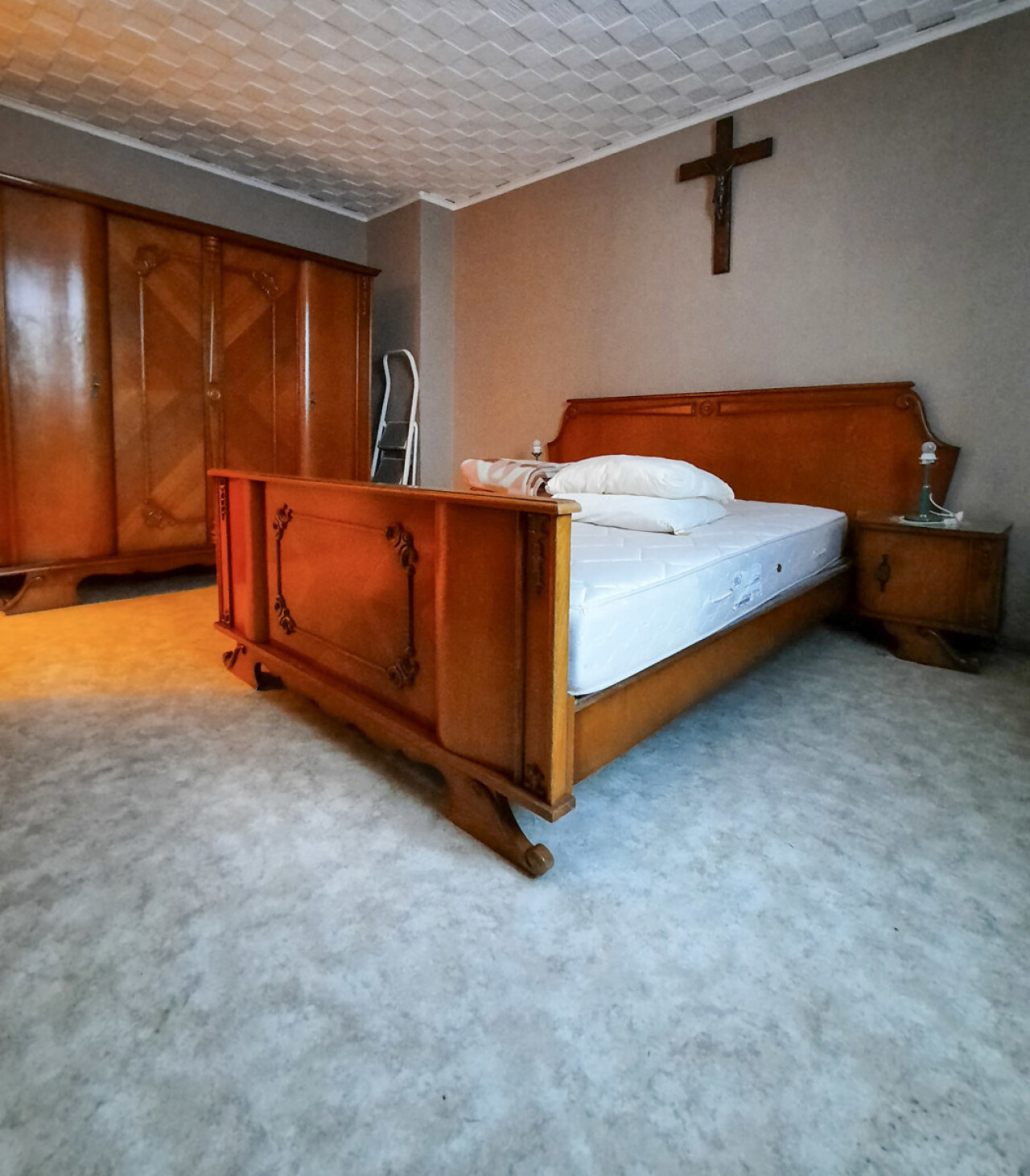 Verdieping: nachthal/trap met 2 slaapkamers en een aparte kast/bergruimte.
